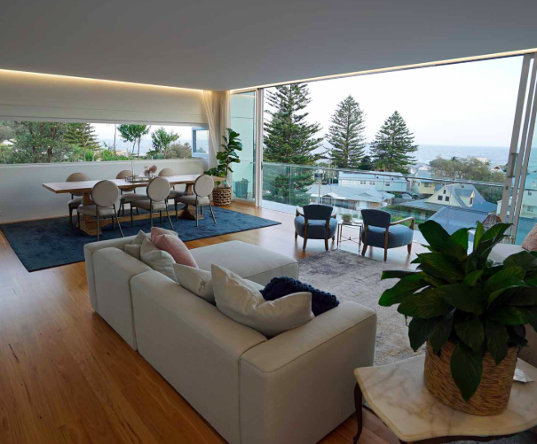 A casa de décor elegante, simples e aconchegante localizada em Sydney, na Austrália, foi desenvolvida pelo arquiteto Matt Thitchener e está na posição certa para que a grande varanda pareça um quadro pintado com a bela visão do horizonte, onde o céu se conecta com o Oceano Pacífico.
