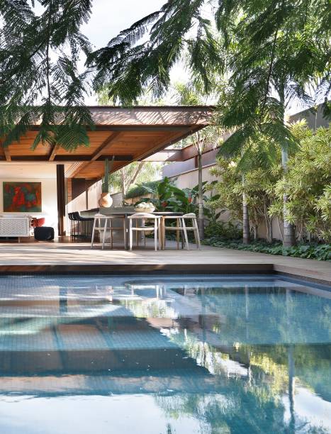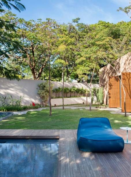 Como o objetivo principal da arquiteta foi criar uma casa integrada aos jardins, o projeto de arquitetura nasceu junto com o projeto de paisagismo, que ficou a cargo do escritório LF Paisagismo.