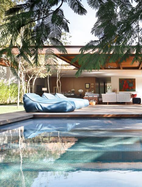 Da Itália, vieram o sofá e as poltrona do living (da Minotti) e alguns móveis da área externa (da Paola Lenti), como as espreguiçadeiras e os sofás. Entre as obras de arte, Solange destaca o quadro na sala de jantar, do Burle Marx, e a escultura de piso na sala de estar, do artista Ascânio MMM. “Inclusive, partimos do quadro do Burle Marx para definir a paleta de cores da decoração da sala”, revela ela.