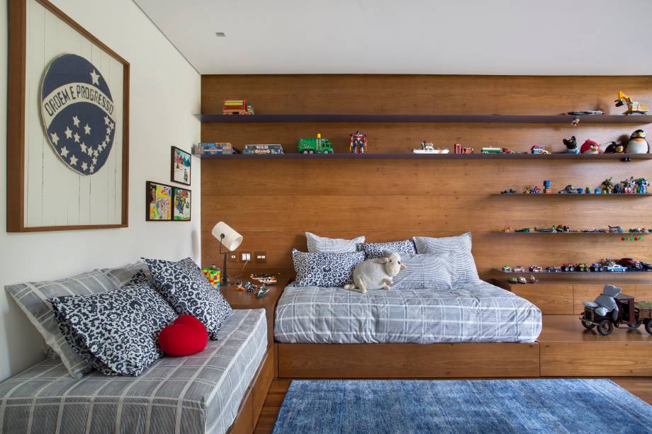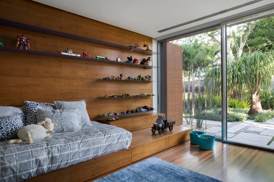 “Nosso desejo era ter uma casa térrea com grandes vãos que permitissem a máxima integração dos espaços internos com a área externa, trazendo assim bastante iluminação natural para todos os cômodos. Também queríamos que os ambientes sociais fossem integrados para estimular o convívio da nossa família”, conta Solange.