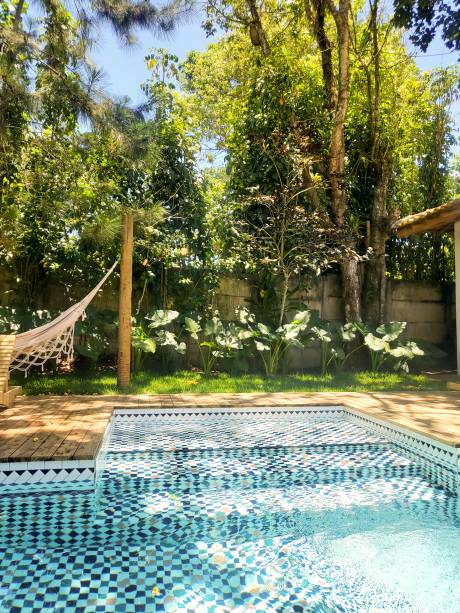 Quem se hospedar na Casa Rose também vai desfrutar de uma piscina aberta, uma jacuzzi de borda infinita, área gourmet, cozinha aberta, quintal com deck, área de descanso no jardim, uma varanda que envolve a casa inteira, entre outros serviços.