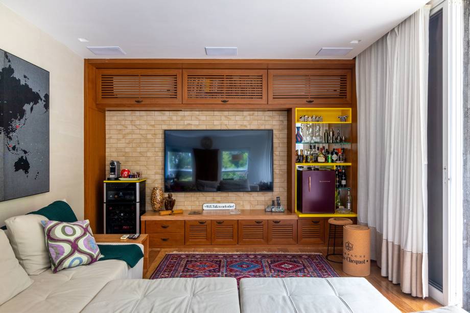 “Eles pediram para acabar com um closet que havia no segundo andar e transformar o espaço dele em um quarto de música, que também poderia ser usado como quarto de hóspede, com tv”, conta ela.