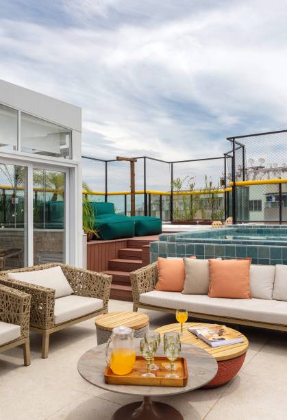 Cobertura tem estilo urbano no primeiro andar e praiano no segundo