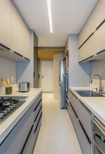 O primeiro andar sofreu menos interferências na planta original. Foi criado um corredor ligando a cozinha ao hall íntimo para garantir mais privacidade à família. O banheiro da suíte das filhas foi transformando em banheiro canadense para atender também o cômodo vizinho, que foi transformado e brinquedoteca.