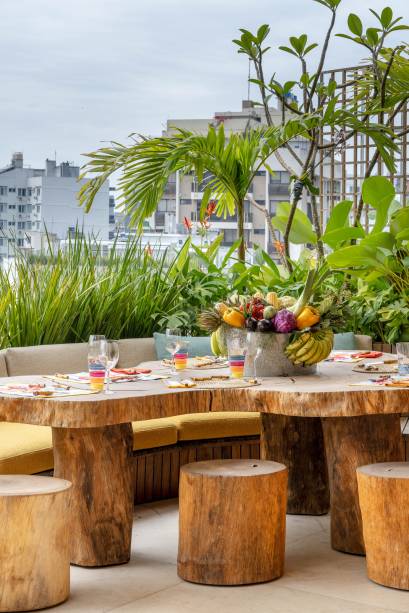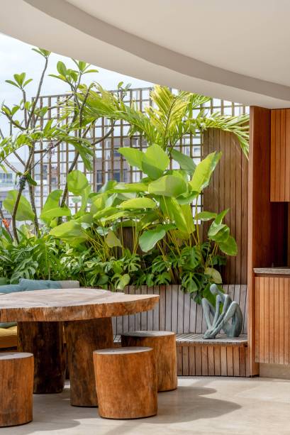 “Trabalhar num edifício redondo foi bastante desafiador, pois a indústria não produz para este formato. Na área externa do pavimento superior, por exemplo, fizemos um extenso banco de marcenaria em grandes blocos de madeira para acompanhar a curva da mureta onde ficam as jardineiras”, finaliza o designer Roberto Souto.