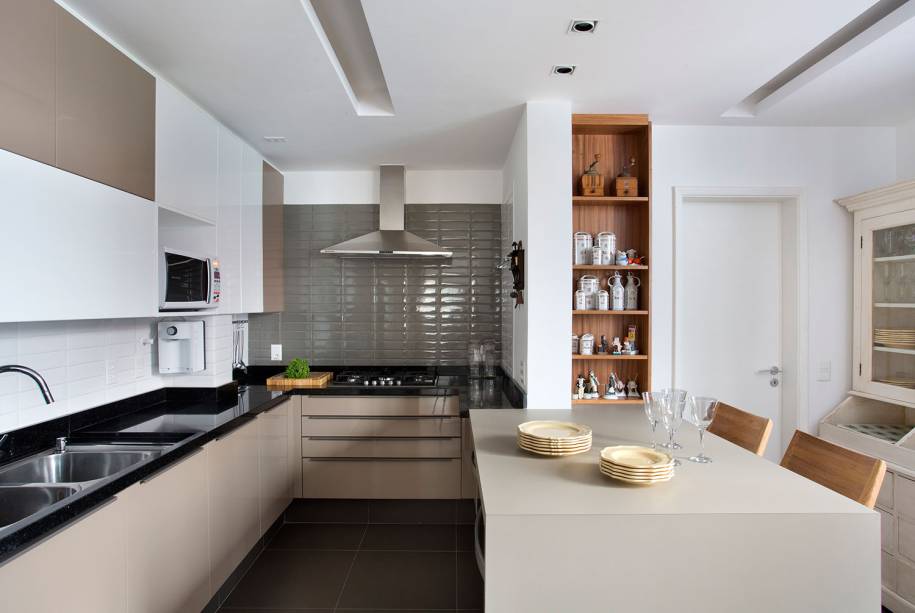 A arquiteta fez uma abertura na parede onde fica o home office para instalar uma ampla janela que dá para a varanda da sala, com vista para o verde do pátio interno do prédio. Um dos quartos foi anexado ao living para ampliar a área social, que passou a ter 82 m², e a cozinha foi integrada à sala de jantar, com a possibilidade de ser isolada, quando necessário.