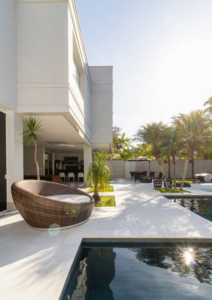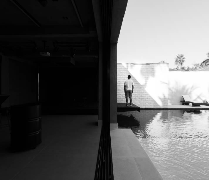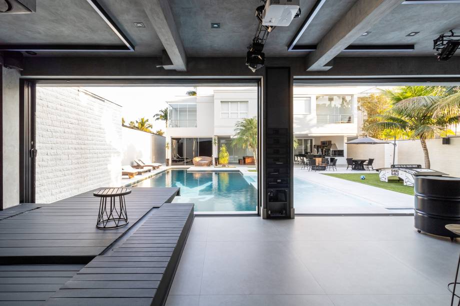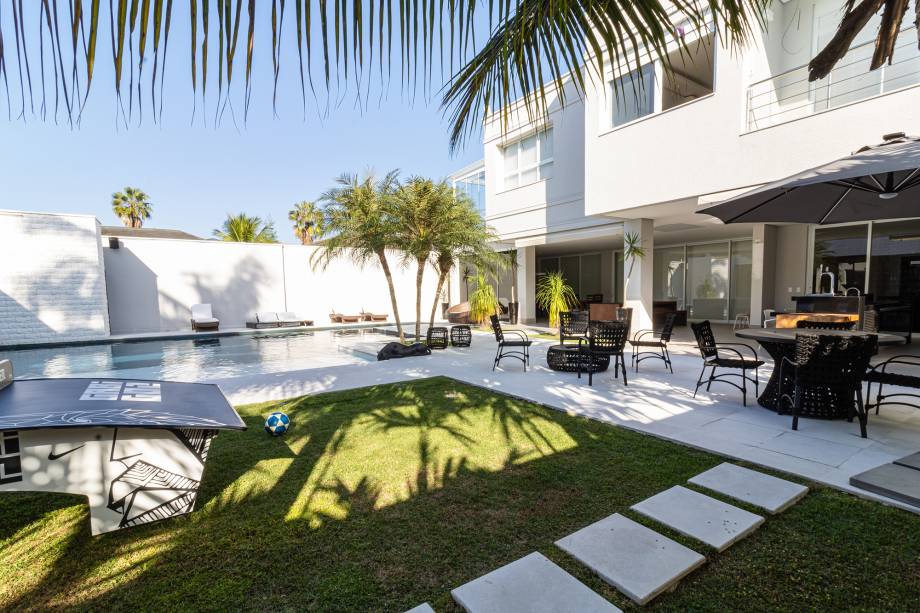 A residência, construída há 10 anos, passou por um retrofit na área de lazer. Com um perfil familiar que valoriza receber convidados, o desafio era integrar elementos contemporâneos à estrutura existente, preservando sua essência.