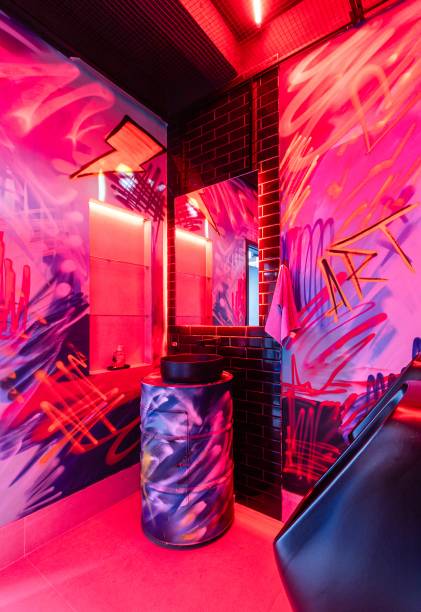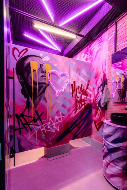A decoração, sutil e contemporânea, foi desenvolvida em colaboração com os clientes, destacando-se o grafite nos banheiros, uma obra única do artista Afonsoul.