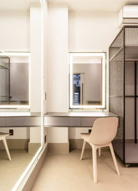 No térreo, a disposição antiga foi respeitada, promovendo uma articulação funcional e fluida. A área de confraternização ao ar livre e o salão de festas, com fachada aberta para piscina e área gourmet, criam um “pátio de lazer” central no lote.