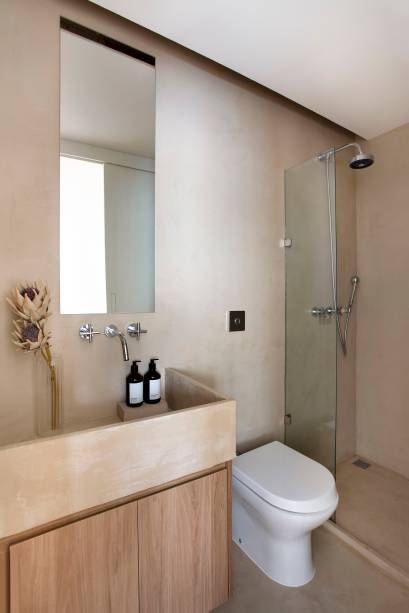 A planta original contava com um banheiro a menos e a cozinha era bastante apertada. Com a reforma, os cômodos foram redistribuídos para dispor de três banheiros completos, uma área de serviço espaçosa – com “gatificação” e banheiro para os gatos Isaquias e Ceará – e cozinha integrada à sala. “Nosso principal objetivo em todos os projetos é alcançar amplitude e espaço de circulação livre, porque a vida acontece nos vazios. É no chão que a criança se senta para brincar, nos corredores da casa que a família dá bom dia e se abraça”, reflete Mariana.
