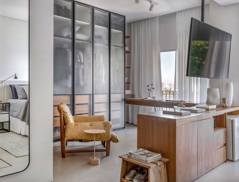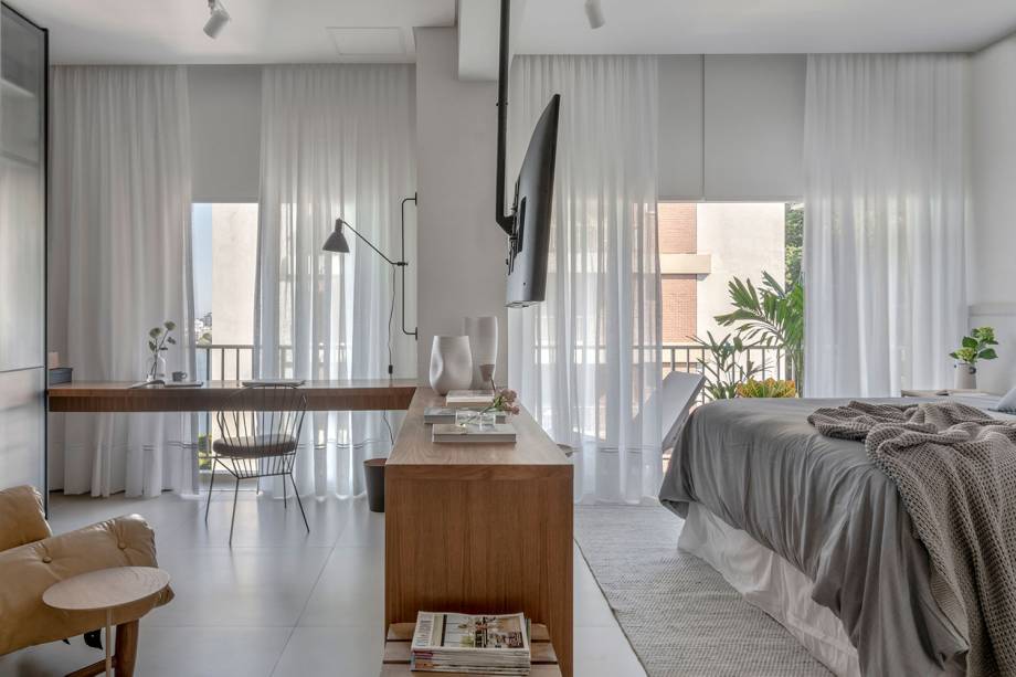 O recurso, proposto pela arquiteta Marina Romeiro, incorporou parte da sala e tornou a suíte integrada ao closet e ao escritório mais confortável