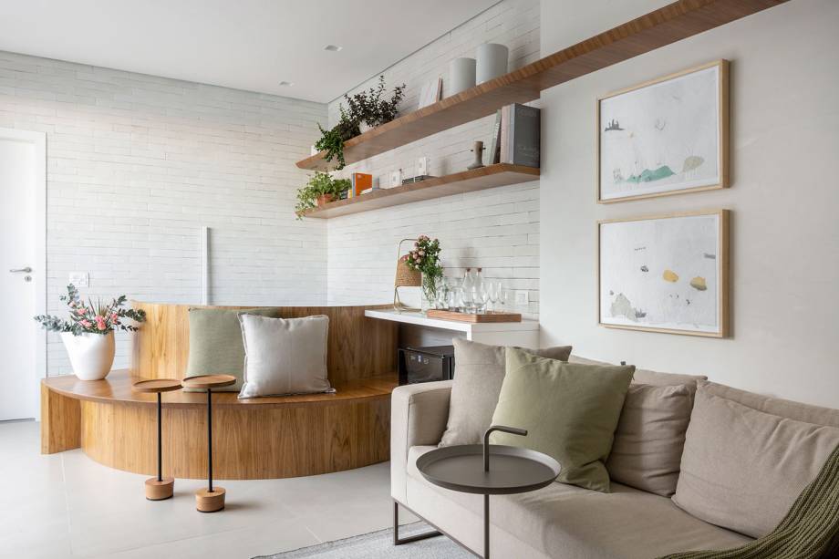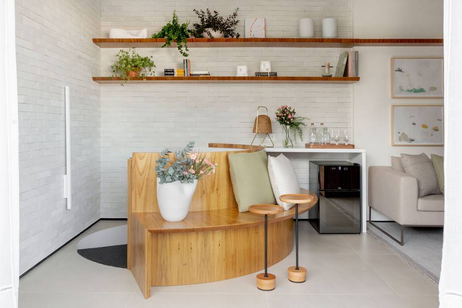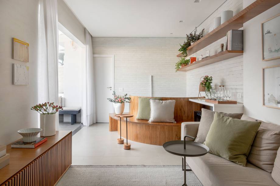 “Eles queriam um apartamento mais jovem, com uma pegada meio clean, meio industrial, com ambientes integrados. Além disso, os clientes nos pediram um banheiro grande, pois o deles era muito pequeno. Incorporamos o lavabo e fizemos um banheiro bem clean, com cara de hotel”, descreve Marina.