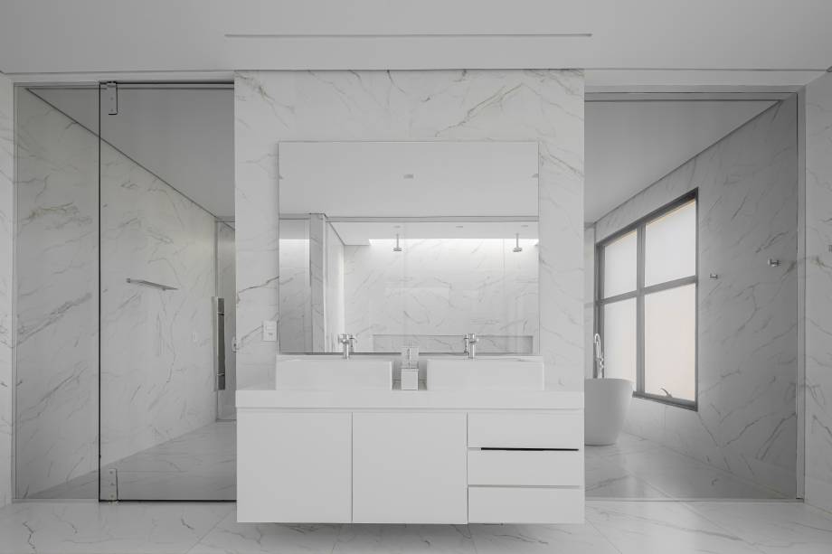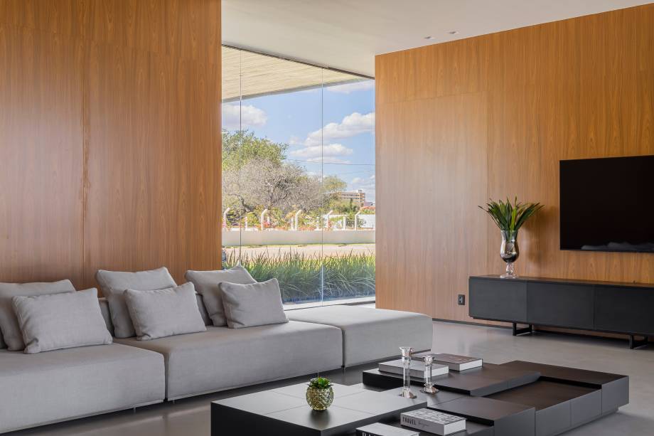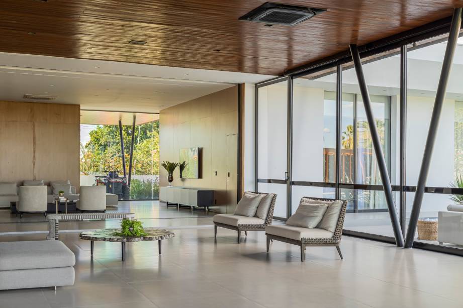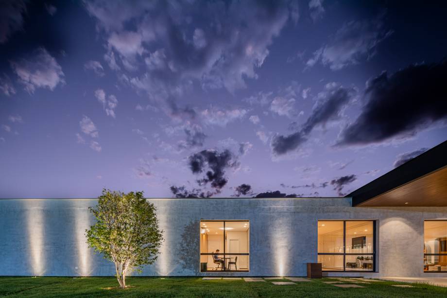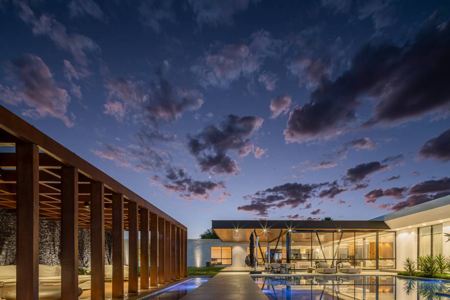 “Esses fatores criam um recinto convidativo, elegante, funcional e moderno. É, portanto, uma casa que conecta os moradores entre si e com a paisagem preexistente, além da conexão com as cenas visuais criadas nesse projeto”, conta o escritório.