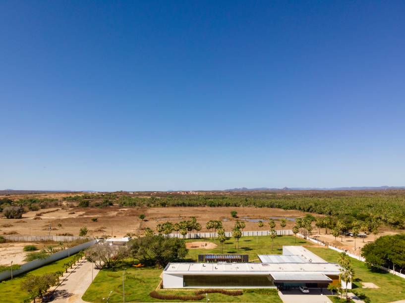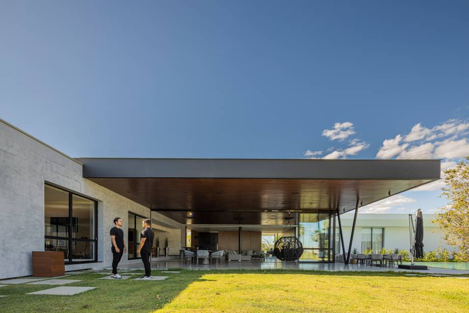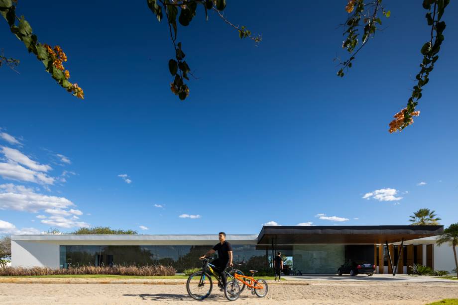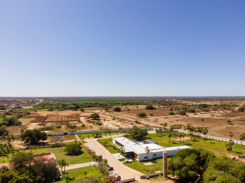 Esta casa minimalista com mais de 1110m² de área construída e fica em Alto Santo, no Ceará. O projeto, assinado pelo escritório Freire Cabó Engenharia e Arquitetura, é disposto em três “caixas”, cada uma abrigando uma função: a área social, a área íntima e uma área diversa, que conta com escritório, área de serviço, academia e brinquedoteca.