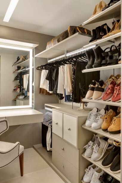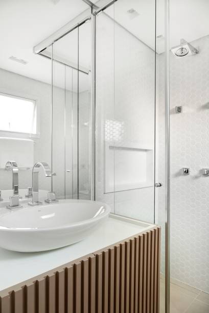 Já as demandas eram como as de uma família comum: aconchego no dia a dia e espaço e conforto para receber os amigos nos finais de semana. Atendendo a elas, o apartamento conta com sala de TV, sala de jantar e uma varanda toda equipada para fazer churrascos.