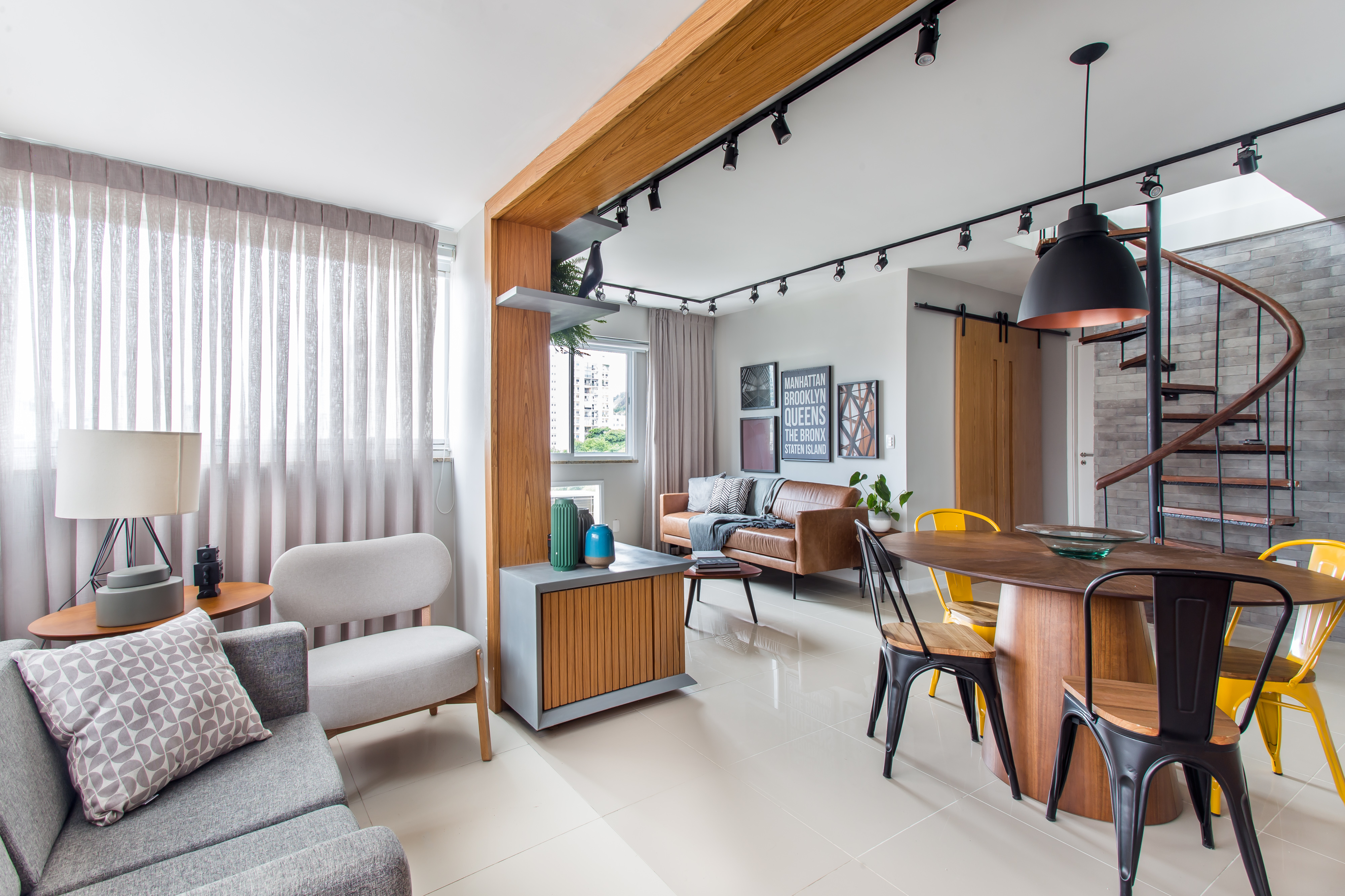 Estilo industrial e integração marcam cobertura duplex de 140 m² no Rio