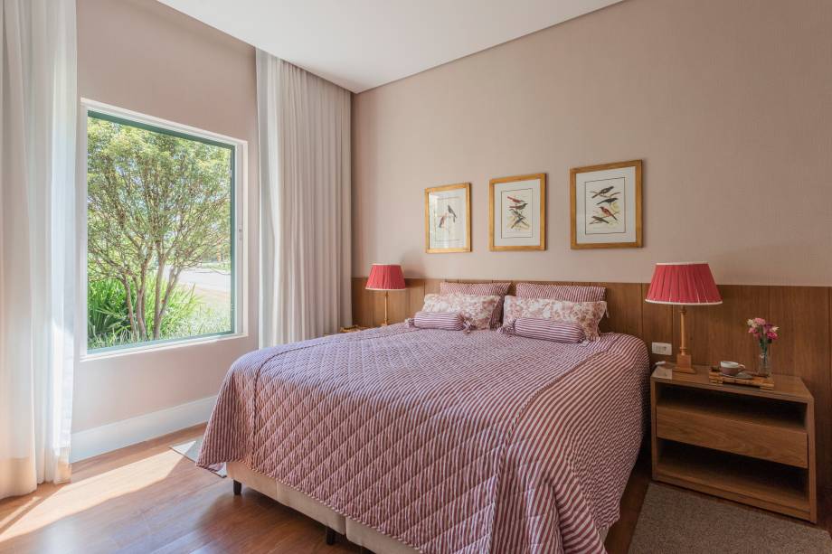 Karen, que já havia projetado o imóvel da família em São Paulo, diz sobre a casa na fazenda: “A proprietária tem um estilo mais romântico e super clássico. Todos os quartos seguem essa linguagem; os papéis de parede e as camas demonstram esse estilo”.