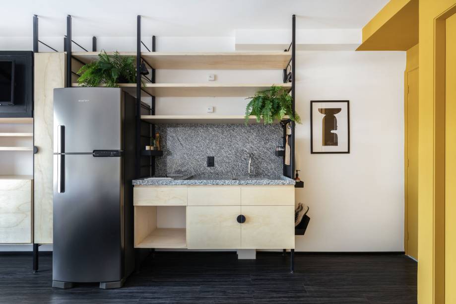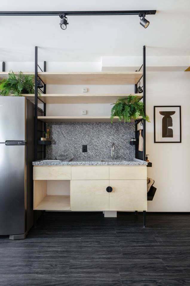 Com projeto de interiores assinado pelo escritório Macro Arquitetos, este estúdio de 29 m² localizado na Consolação, em São Paulo, teve como proposta integrar os ambientes e criar móveis de forma prática e compacta.