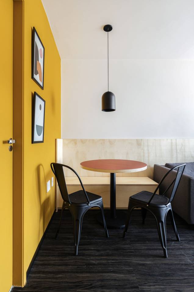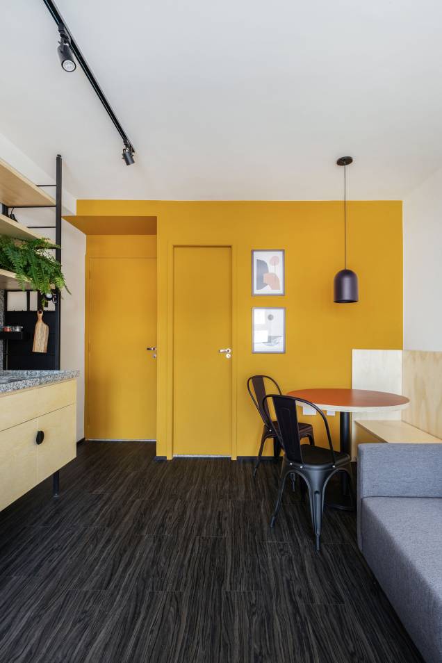 O projeto é do escritório Macro Arquitetos, que atribuiu uma cor de destaque a uma das paredes