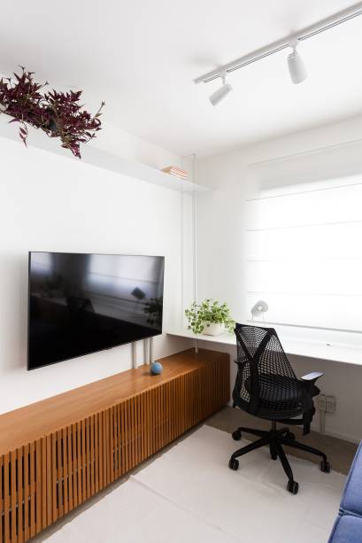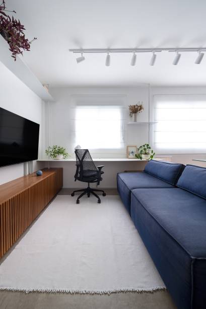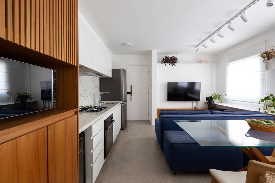 Com medidas reduzidas e considerando que a maior parte das alvenarias é estrutural, a escolha da planta foi o que permitiu a criação de um layout racional, que atenda usos diversos de forma confortável. Quem assinou este projeto compacto é o Gabriel Luqui, do Balaio Arquitetura.