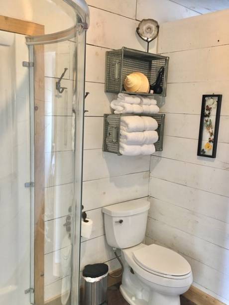 O décor é um dos elementos desse projeto que mais chama atenção, principalmente porque algumas peças não são novas, já que foram reutilizadas de outros lugares, como os próprios contêineres. O interior das acomodações é revestido de madeira sustentável da fazenda da empresa em Nova York, os armários da cozinha eram usados em um laboratório no Brooklin, já as janelas foram adquiridas de uma escola na Filadélfia, Pensilvânia, que iria ser demolida.