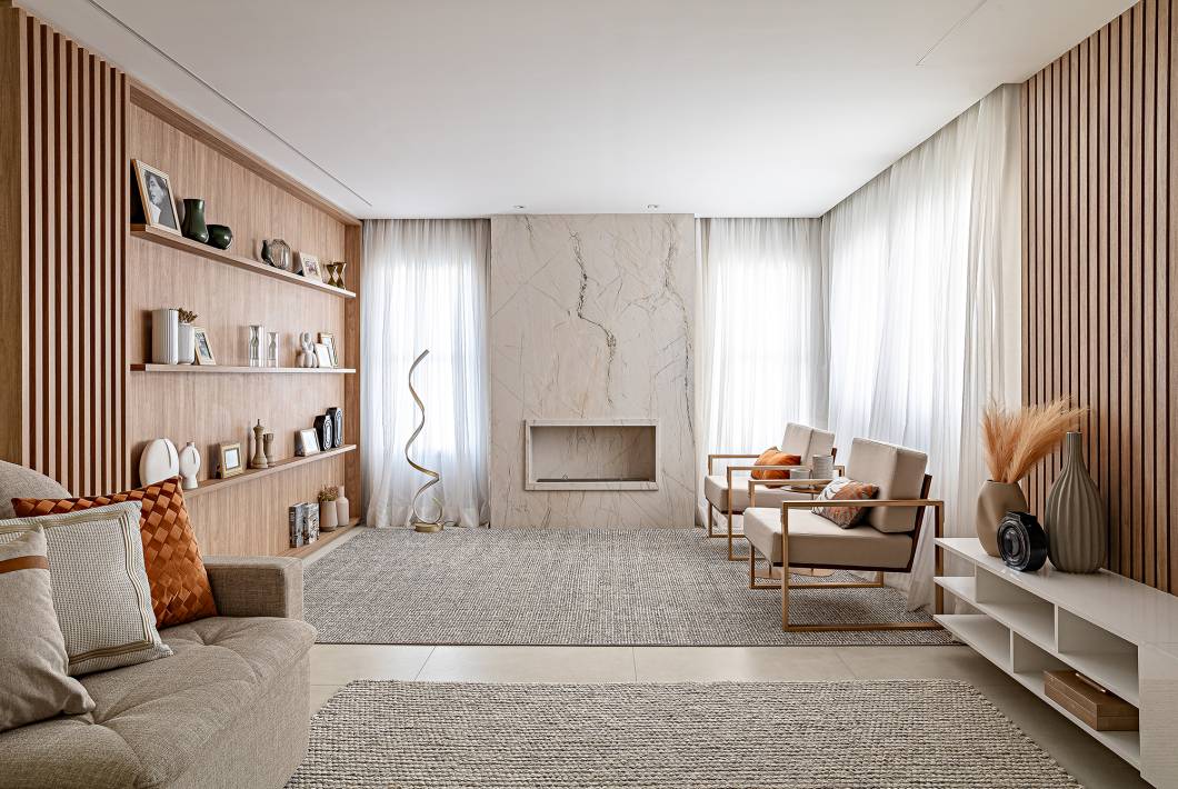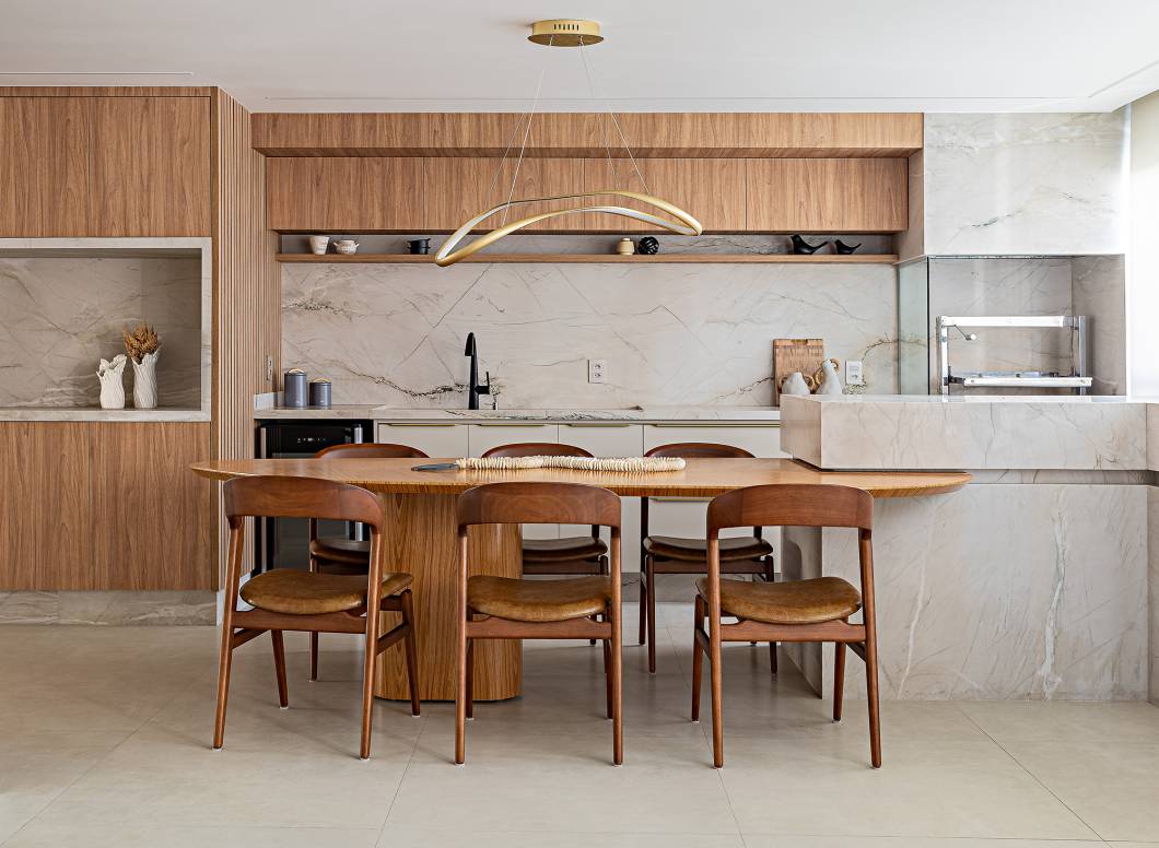 Iluminação natural, pedra e madeira marcam este apê de 225 m²