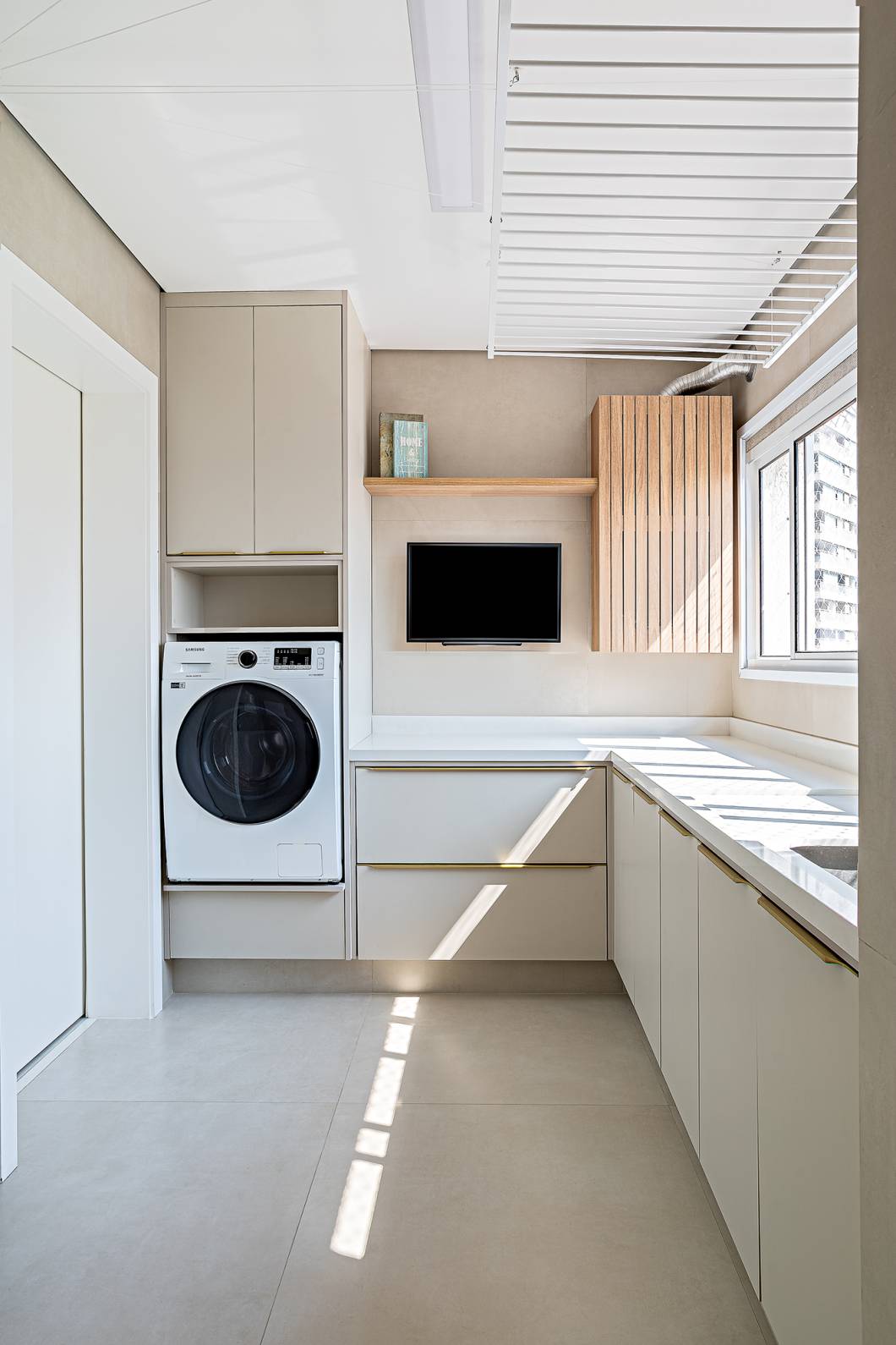 A arquiteta Juliana Ruba também criou uma varanda gourmet super funcional para a família de comerciantes
