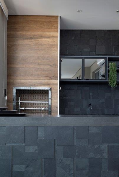 O projeto, assinado pelo escritório 016Arquitetura, apostou em uma paleta composta por tons de cinza e madeira, concreto e serralheria para os materiais