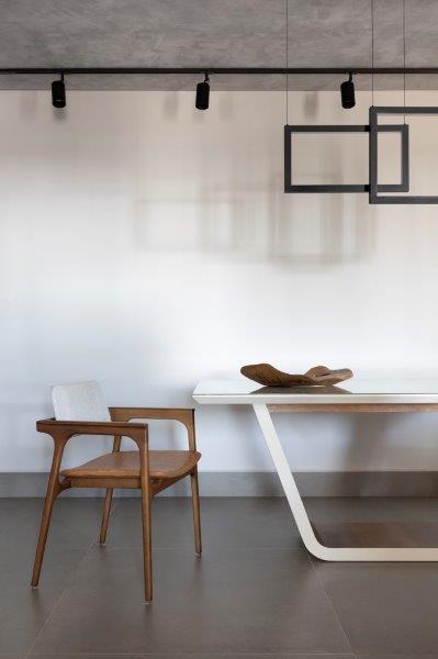 Na decoração foi escolhida uma paleta de tons de cinza, com madeira, o concreto e a serralheria como materiais predominantes.