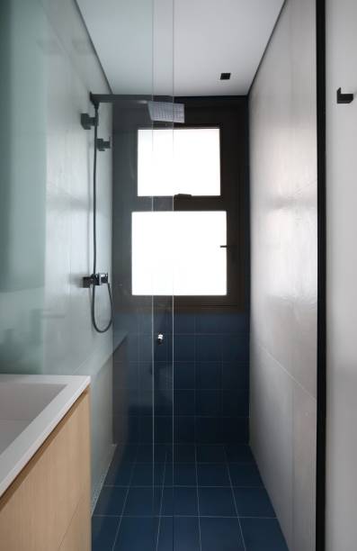 Na área íntima, os arquitetos criaram um recorte na parede que divide os quartos e instalaram um painel de serralheria preta e vidros transparentes. A ideia foi integrar os ambientes. Na suíte, cama box foi posicionada perto da janela e ganhou uma cabeceira de linho cinza claro. Para separar a área do banheiro, os profissionais desenharam portas de correr com estrutura em roldanas pretas.