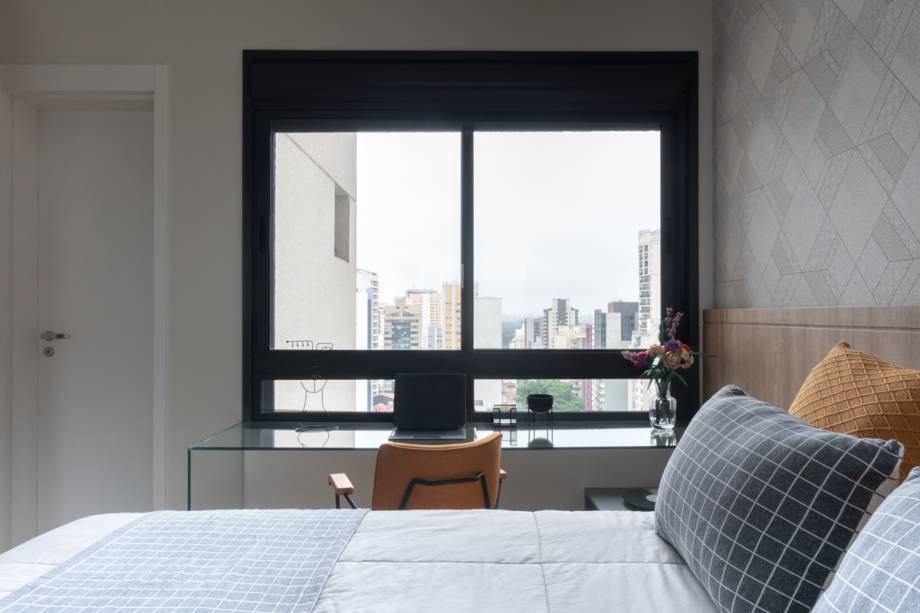 O vidro foi escolhido como material pela sua leveza. Por ficar embaixo da janela, ele “desaparece” no ambiente.