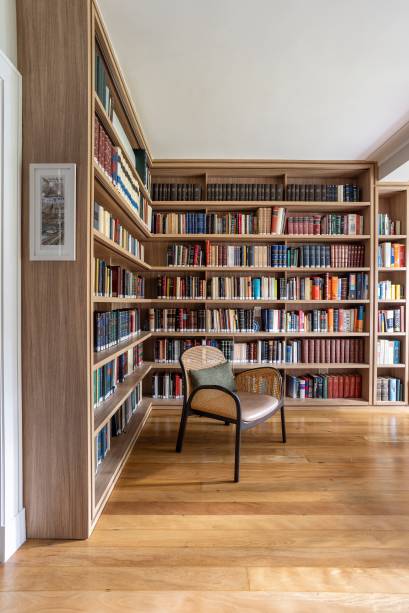 Marcenaria para acomodar a biblioteca dos sonhos é destaque em casa