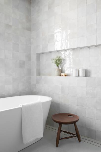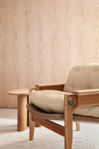 As profissionais do escritório Très Arquitetura apostaram em um revestimento de porcelanato de formato orgânico para criar unidade visual entre os ambientes