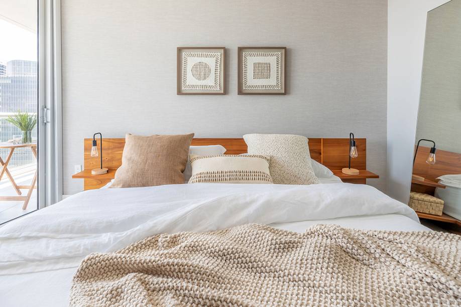 A outra demanda era posicionar a cama de sua suíte com a cabeceira voltada para a fachada de vidro, para que ele pudesse ter a vista do mar quando acordasse e não da cidade.