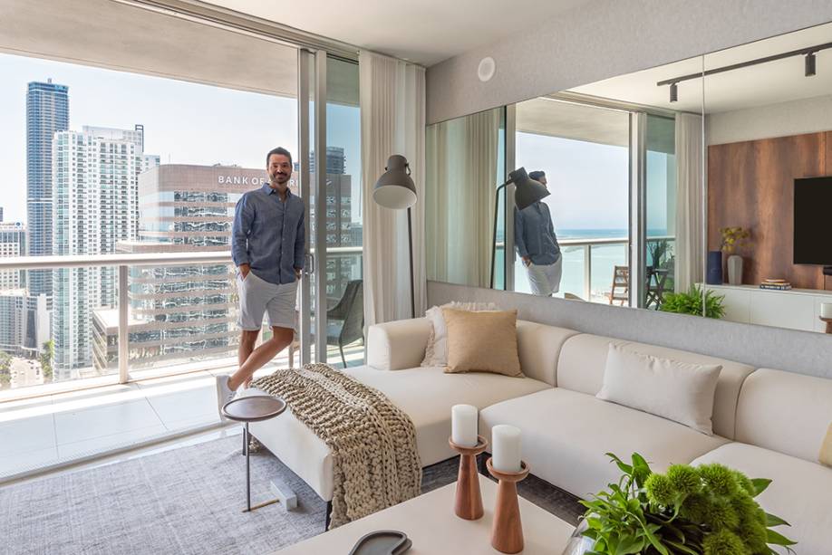 Com vista para Miami Beach, este apê de 135 m² é um oásis urbano
