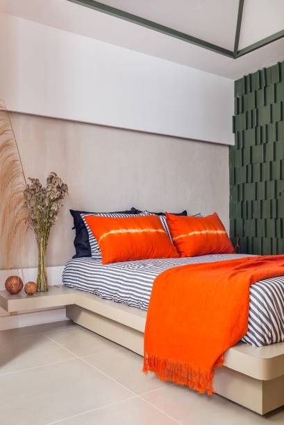 A paleta de cores foi extraída da bancada de granilite da cozinha é clara, o que torna o espaço mais leve. Brincadeiras com texturas, pontos de cores terrosas e artesanatos brasileiros conferiram ao espaço uma atmosfera “Bachianas Brasileiras nº 2”, de Villa Lobos, segundo os profissionais. Também merece destaque a cuba pink do banheiro como toque final.
