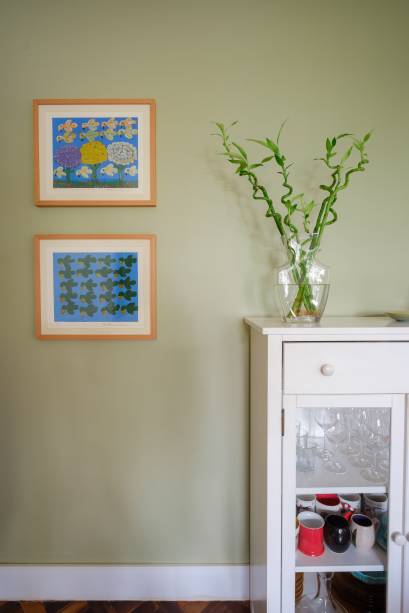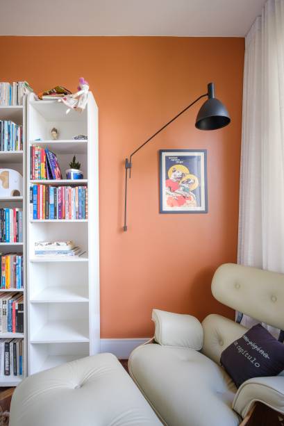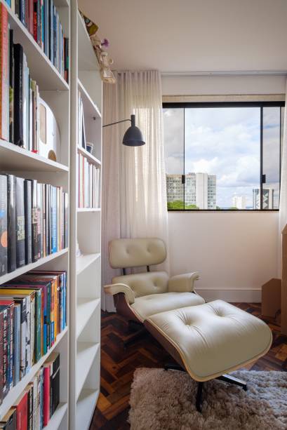O acervo pessoal da família foi incorporado ao projeto para refletir sua personalidade. Obras de arte e mobiliários foram selecionados, como a Poltrona Eames, a Luminária Bauhaus, da Lumini, uma mesa antiga de ipê laqueada – uma herança familiar – e o Banco Uma, da Oppa.