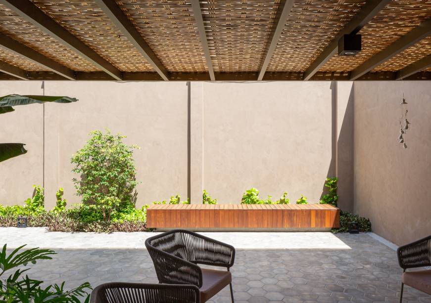 Localizada em um condomínio de poucas residências, em Feira de Santana, Bahia, esta casa tem uma atmosfera de refúgio. Isso porque ela fica em uma rua arborizada e silenciosa, por ser afastada das vias mais movimentadas da cidade. E foi esse clima que os arquitetos Filippo Rota e Kyze Vasconcelos, do escritório Studio Kyze Arquitetura e Design, reforçaram no projeto de reforma.