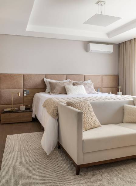 Porcelanato, revestimentos cimentícios e tons neutros marcam apê de 260m²