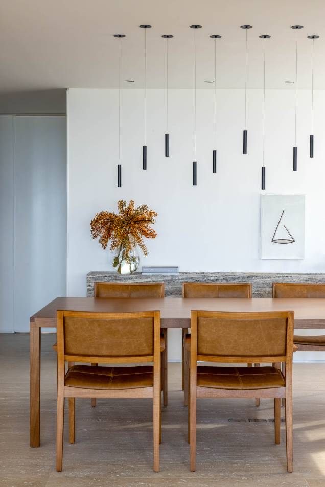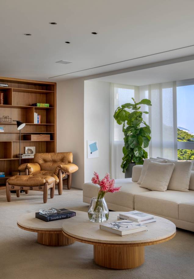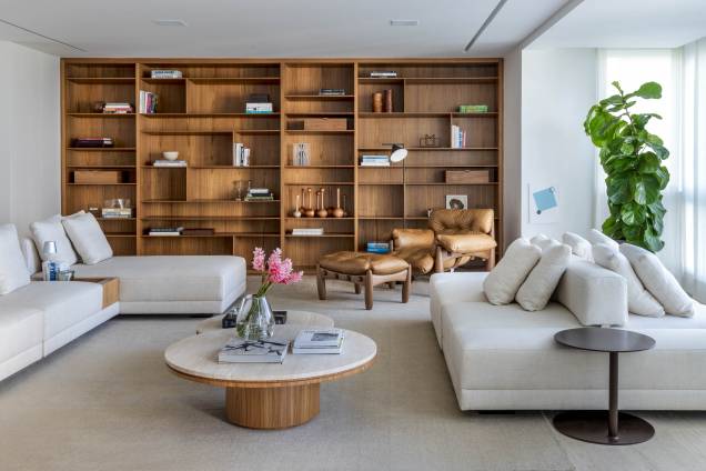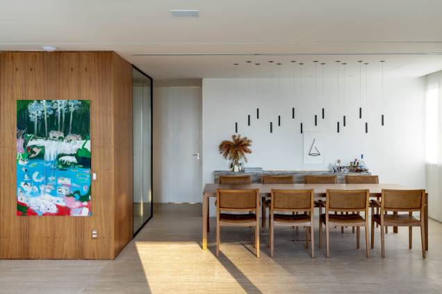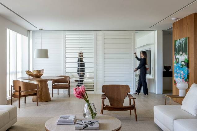No décor, os tons claros e a madeira prevalecem. Uma combinação que traz a sensação de aconchego que era fundamental para a família e deixa brilhar ainda mais o mobiliário de design assinado como a poltrona Mole, de Sérgio Rodrigues; e a cadeira Senior, de Jorge Zalszupin.