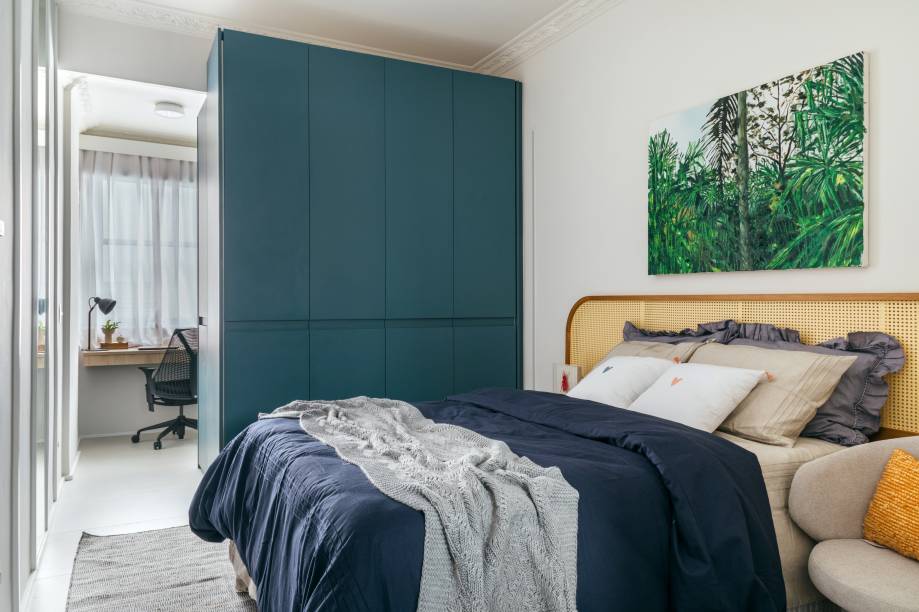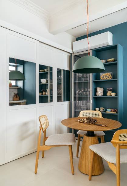 Richard de Mattos, à frente do escritório Casa Cururu, apostou em uma base neutra pontuada pelo azul na marcenaria
