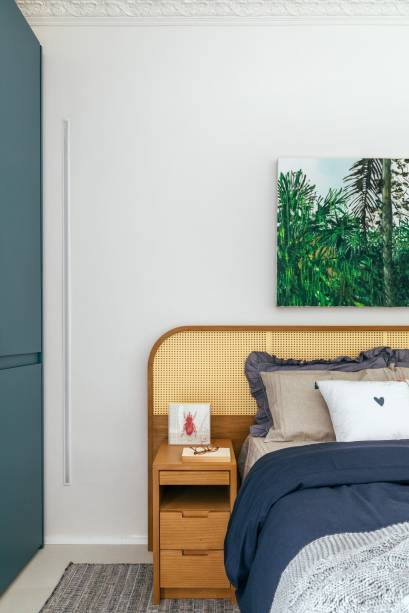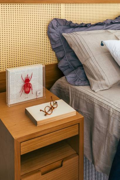 Na decoração, que segue o estilo contemporâneo, Richard usou uma base neutra e, para não ficar restrito aos tradicionais cinza, branco ou bege, acrescentou um tom de azul mais fechado, presente no acabamento melamínico de algumas marcenarias, executadas pela Lacca. “A sanca do teto que contorna todo o perímetro do apartamento foi o único elemento que decidimos manter. De resto, é tudo novo”, acrescenta.