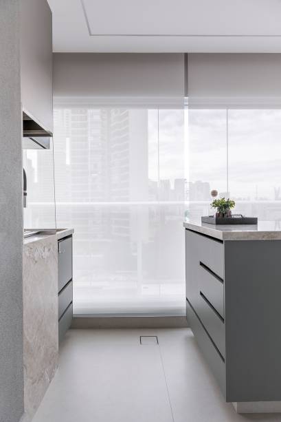 “Eles escolheram todos os detalhes junto com a gente e cada detalhe foi pensado para eles aproveitarem ao máximo o apartamento: receber os amigos, passar o final de semana, trabalhar em casa, cozinhar e fazer churrasco“, conta a profissional.