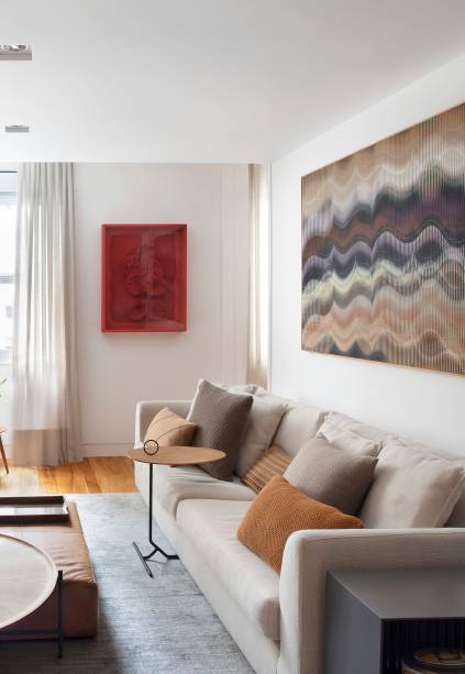 Já os objetos, livros e obras de arte foram integralmente aproveitados do acervo da cliente, com direito a obras de artistas consagrados, como Abraham Palatnik, Frans Krajcberg, Chiara Banfi, Angelo Venosa, Daniel Senise e Gonçalo Ivo.