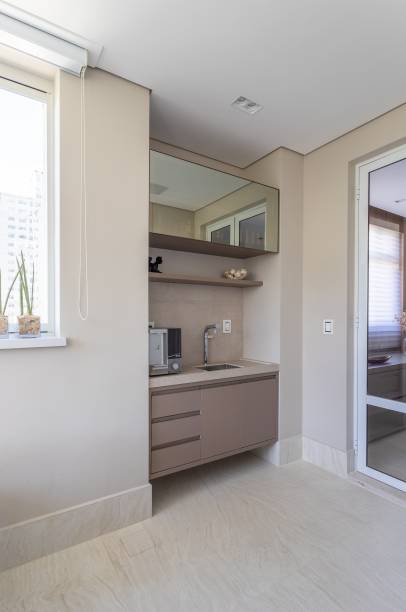 A remodelação começou pelo setor de serviço, pois a proprietária queria ampliar a cozinha e, com isso, reduzir a área de serviço que era bastante generosa. Através da reforma, o imóvel se tornou mais proporcional e atendeu aos desejos da proprietária, que desfruta de um living completo para recepcionar seus convidados.