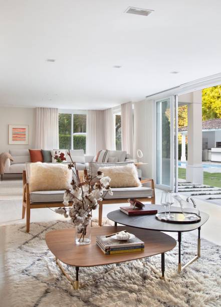 A família de moradores desta casa de 450 m², composta por um casal de empresários com três filhos jovens, desejava modernizar o imóvel onde já morava, em Pendotiba (bairro na área costeira do município de Niterói, RJ), especialmente o setor social.