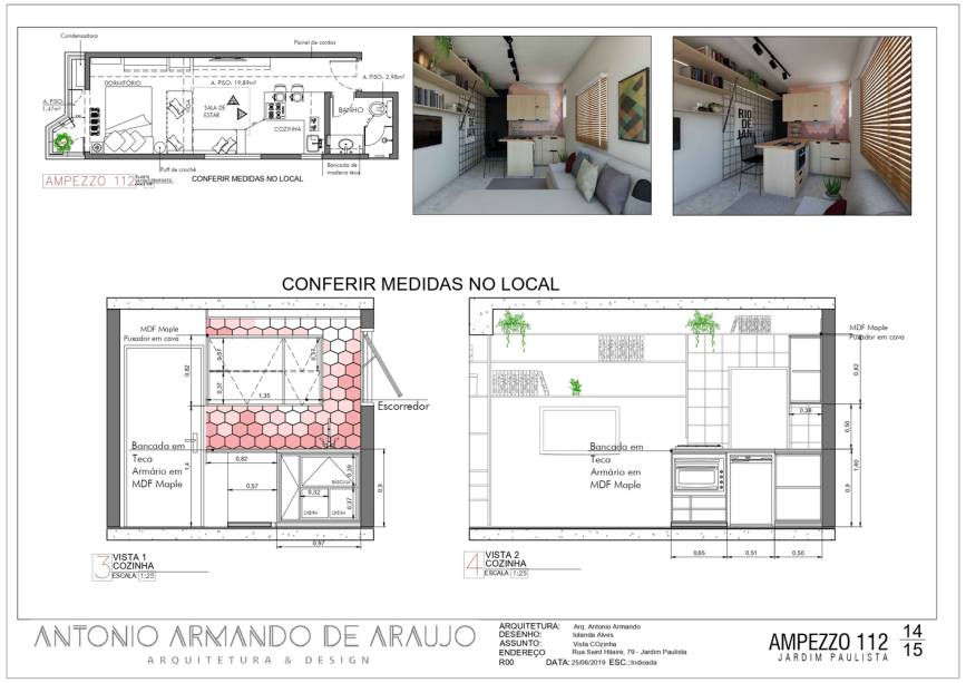 Em relação às mudanças estruturais, a parede que separava a cozinha e a sala de estar foi demolida. Toda a tubulação de água e gás da cozinha também precisou ser alterada para adequação ao novo layout.