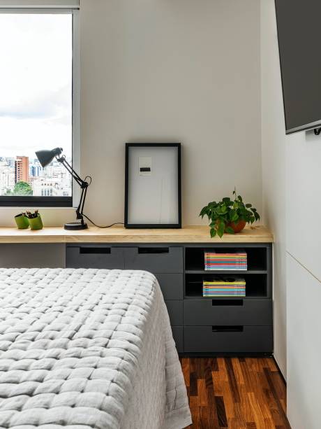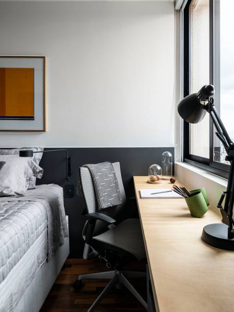O layout foi totalmente modificado e recebeu uma decoração de linhas minimalistas para atender aos desejos do jovem morador
