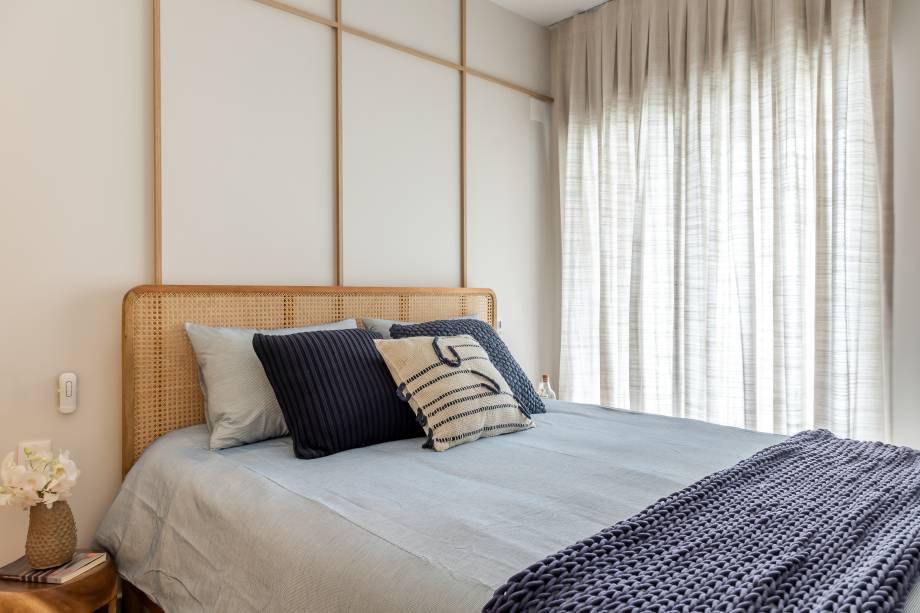 Nos quartos, os tons neutros são dominantes. As cores, quando aparecem, principalmente nas suítes das crianças, vêm em tons pastel. O objetivo era torná-los mais aconchegantes e, no caso das crianças, permitir que a decoração acompanhasse seu crescimento.