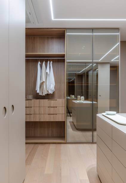 Para otimizar o dia a dia, foram implementadas diversas soluções funcionais, como gavetas com iluminação interna, portas escamoteáveis para armazenar eletrodomésticos, despensas verticais e portas basculantes automatizadas.